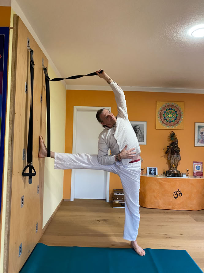 Das Besondere: Wir nutzen auch die Yogawall®, um Übungen präziser und rückenschonender auszuführen.